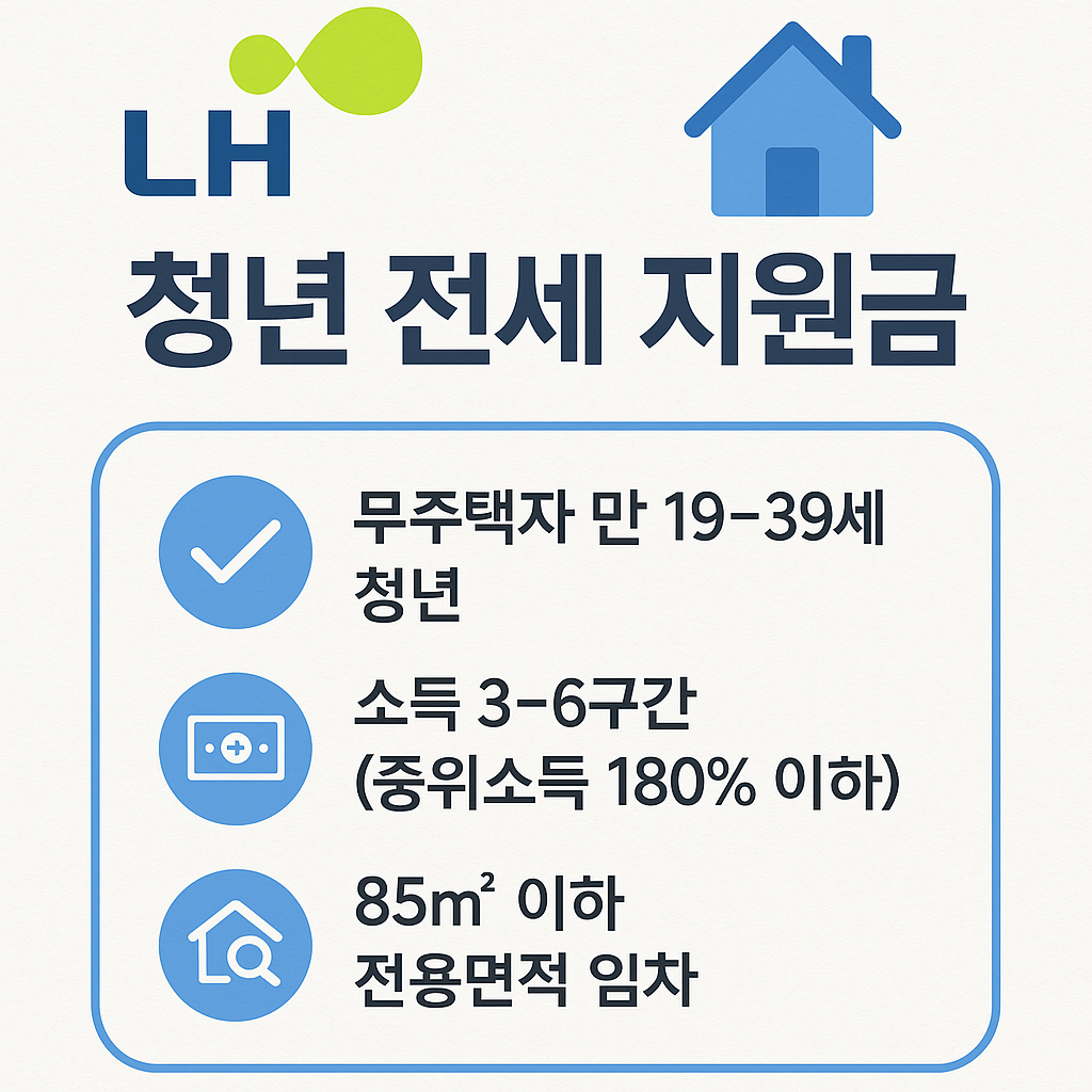 2025년 LH 청년 전세지원금은 청년·신혼부부의 전세 보증금을 저금리로 지원하는 핵심 제도입니다. 이 글에서는 자격요건, 준비서류, 신청 절차, 혜택을 이미지와 함께 깔끔하게 정리합니다.