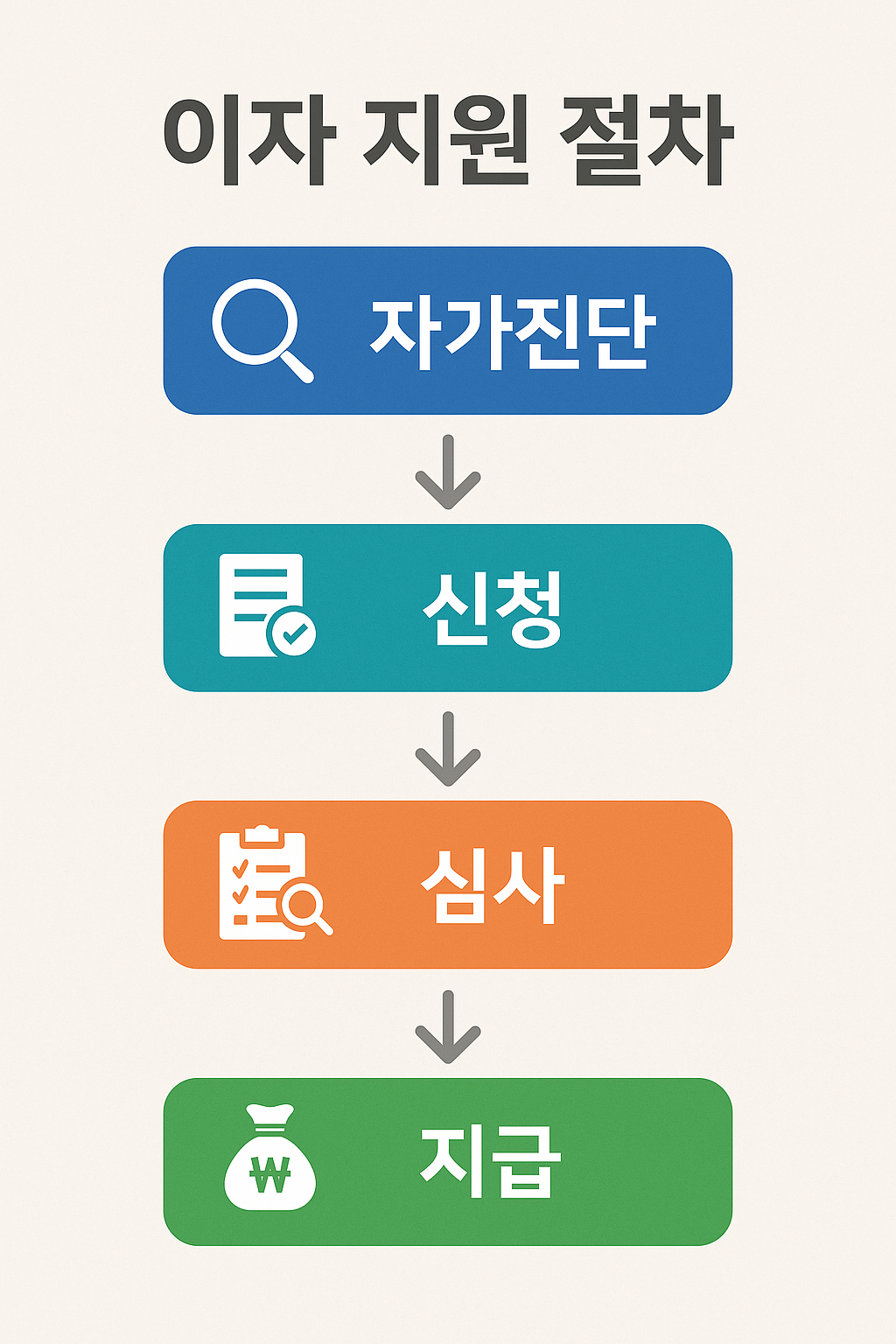 - 지급 — 승인 후 이자 보전/보조금 지급 개시